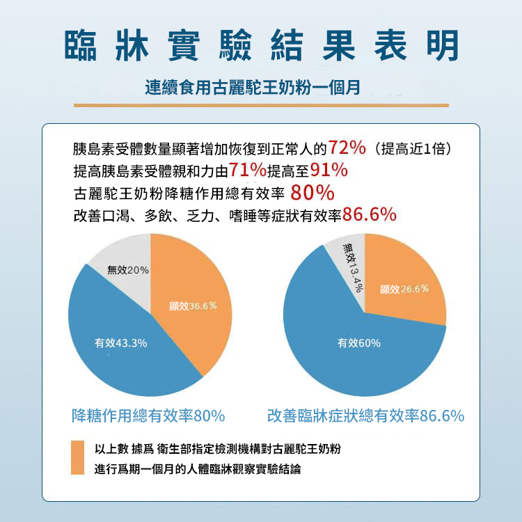 1995年病理生理學家王景賢教授為了解決糖尿病人GTF因子不足的問題,花了費7年多的時間,終於在駝乳中成功提取出能直接被人體利用的GTF因子,還獲得了國家專利!已經問世就拿到了國家科技進步獎,各大新聞都在報道,效果奇好!